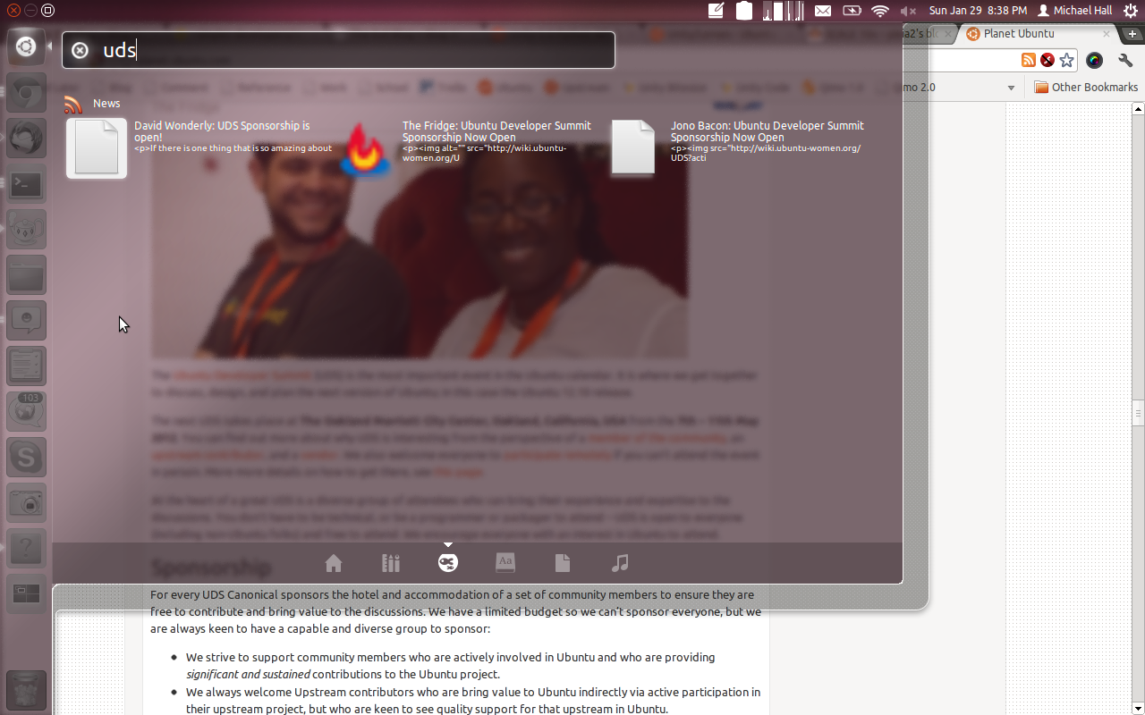 I’ve finally had a little extra time to get back to working on Singlet. There’s been a lot of progress since the first iteration. To start with, Singlet had to be upgraded to work with the new Lens API introduced when Unity 5.0 landed in the Precise repos. Luckily the Singlet API didn’t need to change, so any Singlet lenses written for Oneiric and Unity 4 will only need the latest Singlet to work in Precise[1].